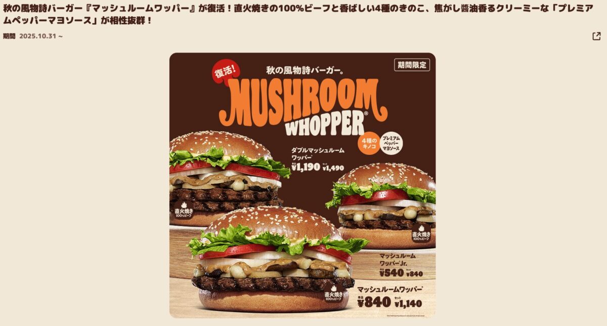 10月にバーガーキングで食べたマッシュルームワッパーが忘れられなくて、
