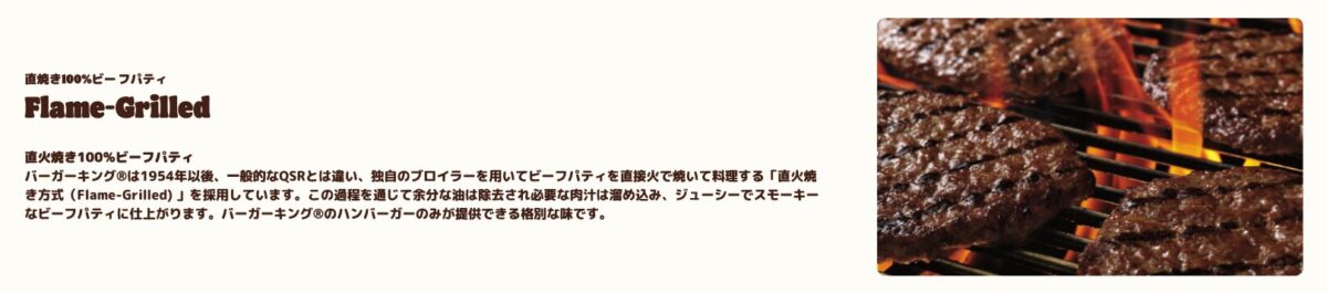 鉄板ではなく直火で焼くことによってジューシーでスモーキーなパティが焼き上がるのである!