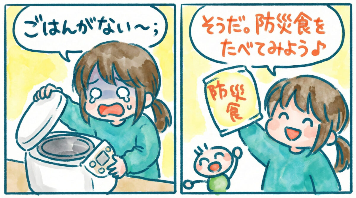 そうだ。防災食をたべてみよう。