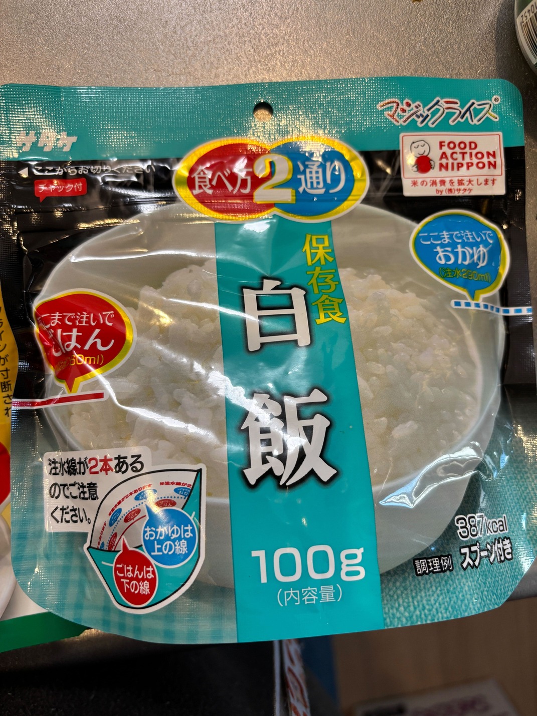 スタンダードに白ごはんやおかゆになるやつと、町内化の防災体験の参加賞でいただいたカレーライス。