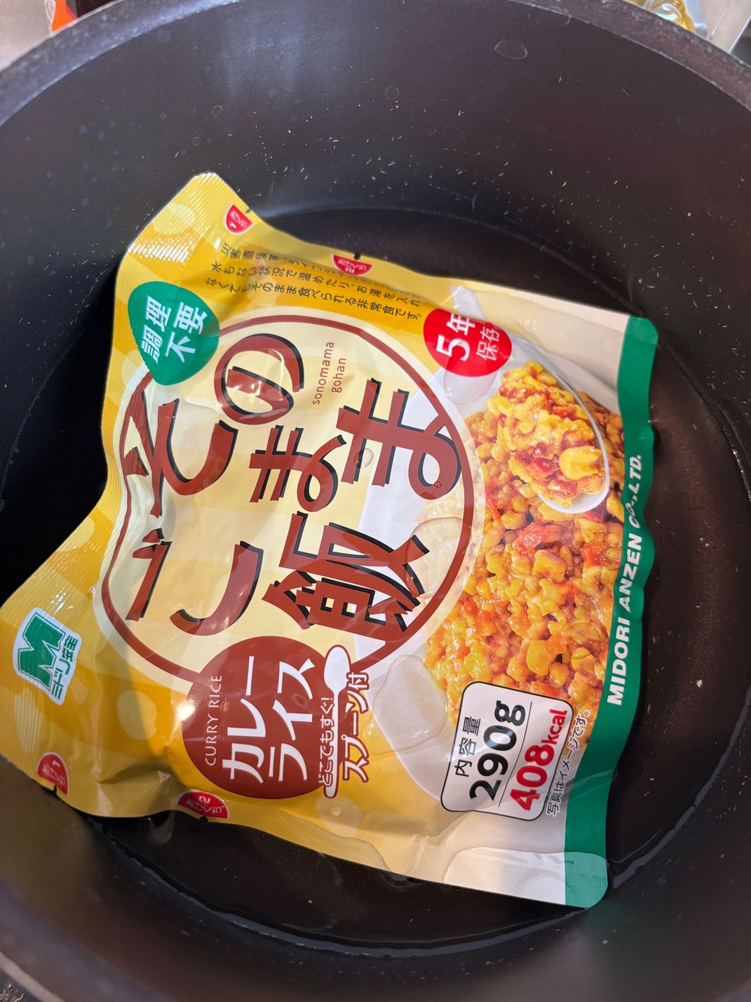 カレーライスは、あたためるなら沸騰したお湯につけるとのことで、、