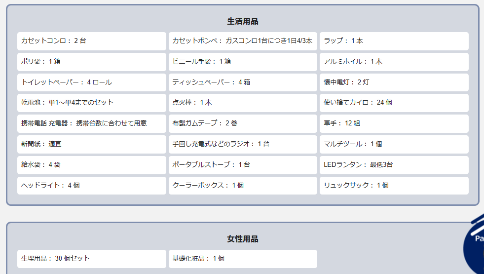 そういえば備蓄ってどんくらいいるの?