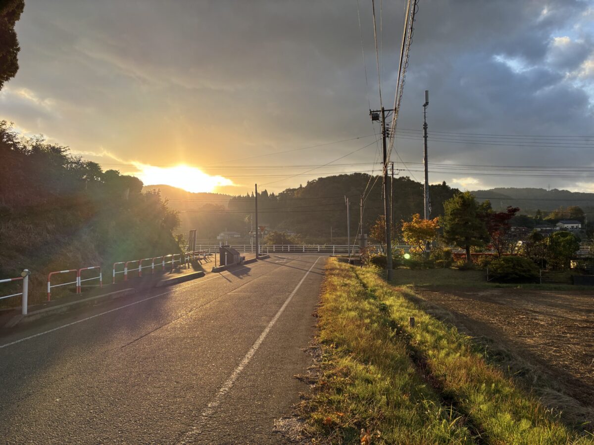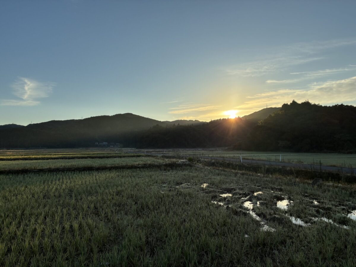 ではなく、耳をすませばきこえてくるのは、虫の音と川のせせらぎ、あたりにあるのは田んぼ、畑、田んぼ、柿の木、田んぼ。