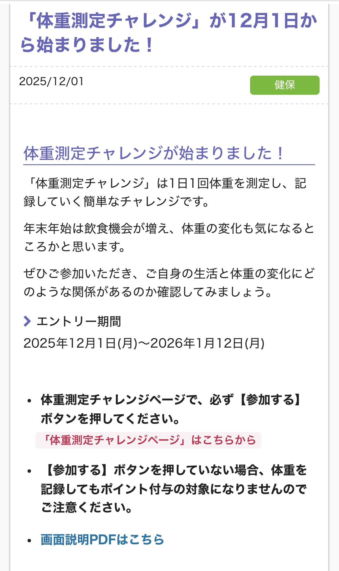 ちなみに、いまは体重計測チャレンジをそのままPepアプリでは参加しておりまして、