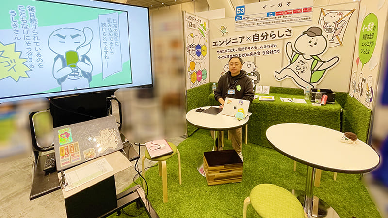 さて、初出店ということで気合を入れて準備を進めたわけですが、イーガオのブースは結果こんな感じに。
